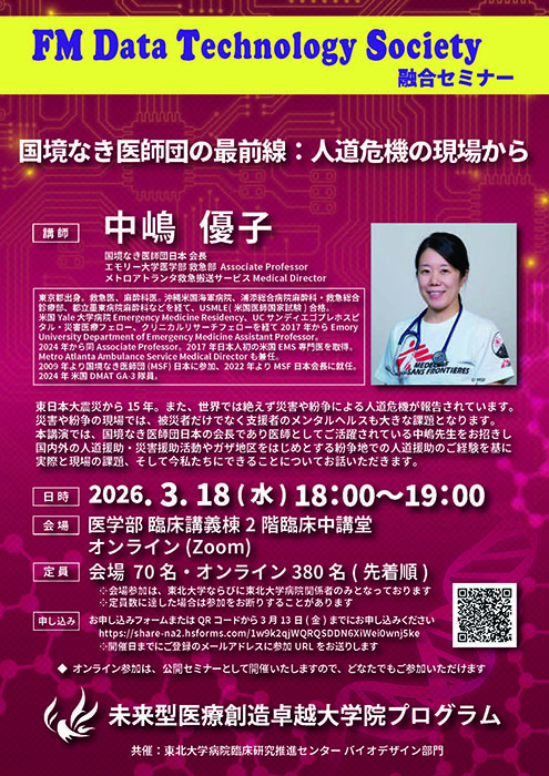 下記ならびに添付の通り、未来型医療創造卓越大学院プログラム FM DTS融合セミナーについてご案内いたします。