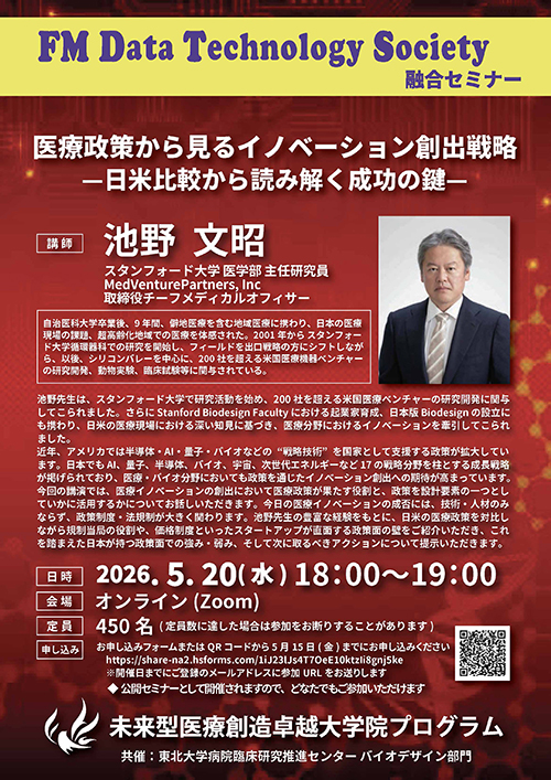【5月20日オンライン開催】FM DTS融合セミナー スタンフォード大学 医学部 主任研究員/MedVenture Partners, Inc 取締役チーフメディカルオフィサー 池野 文昭先生講演会